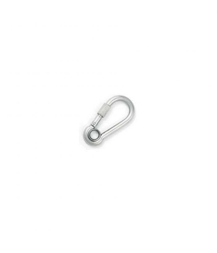 Karabińczyk z kauszą i zabezpieczeniem w formie nakrętki wykonany ze stali kwasoodpornej A4, najczęściej wykozystywany w branży ogólnożeglarskiej ale znajduje zastosowanie również w innych mniej oczywistych miejscach.
