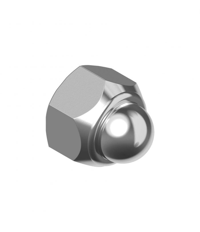 Nakrętka kołpakowa z poliamidową wkładką samohamowną wykonana jest ze stali nierdzewnej A2 zgodnie z normą DIN 986.