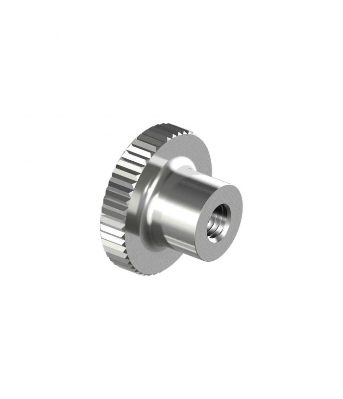 Nakrętka z łbem radełkowanym DIN466 – najczęściej stosowana przy budowie maszyn, wykonana ze stali nierdzewnej A2