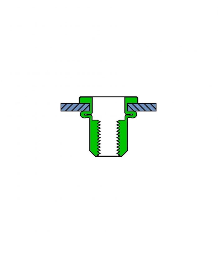 Nitonakrętka otwarta (przelotowa) wykonana jest ze stali nierdzewnej A2. Kołnierz płaski solidnie opiera się na materiale i ma najwyższą odporność na ścinanie i rozrywanie spośród wszystkich typów kołnierzy, nalezy jednak pamiętać, że po zanitowaniu nitonakrętka ta nie zlicuje się z materiałem.