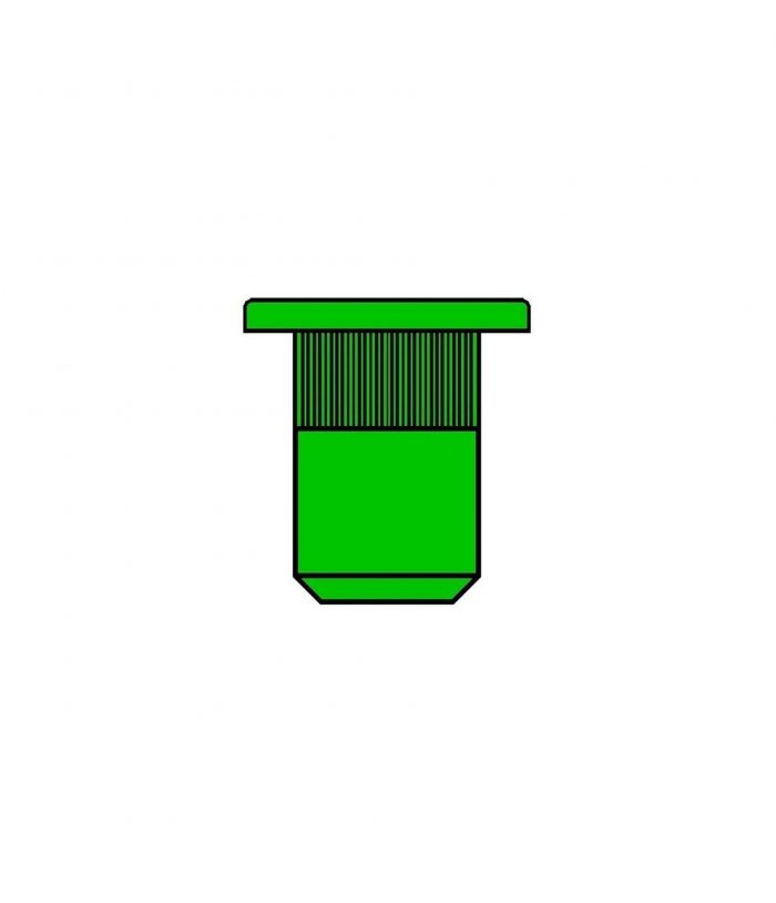 Nitonakrętka otwarta (przelotowa) wykonana jest ze stali nierdzewnej A2. Kołnierz płaski solidnie opiera się na materiale i ma najwyższą odporność na ścinanie i rozrywanie spośród wszystkich typów kołnierzy, nalezy jednak pamiętać, że po zanitowaniu nitonakrętka ta nie zlicuje się z materiałem.