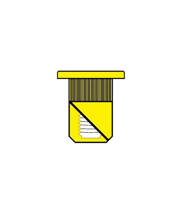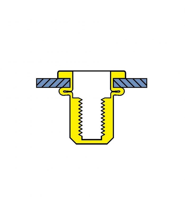 Nitonakrętka zamknięta, wykonana jest ze stali. Kołnierz płaski usztywnia połączenie i zwiększa powierzchnię dociskową. Zamknięta forma gwarantuje szczelność połączenia. Przy tym typie nitonakrętki technika wykonania otworu jest dowolna, nalezy jednak zwrócić uwagę jaka powinna być średnica otwori ściśle trzymać się tego paramertu.