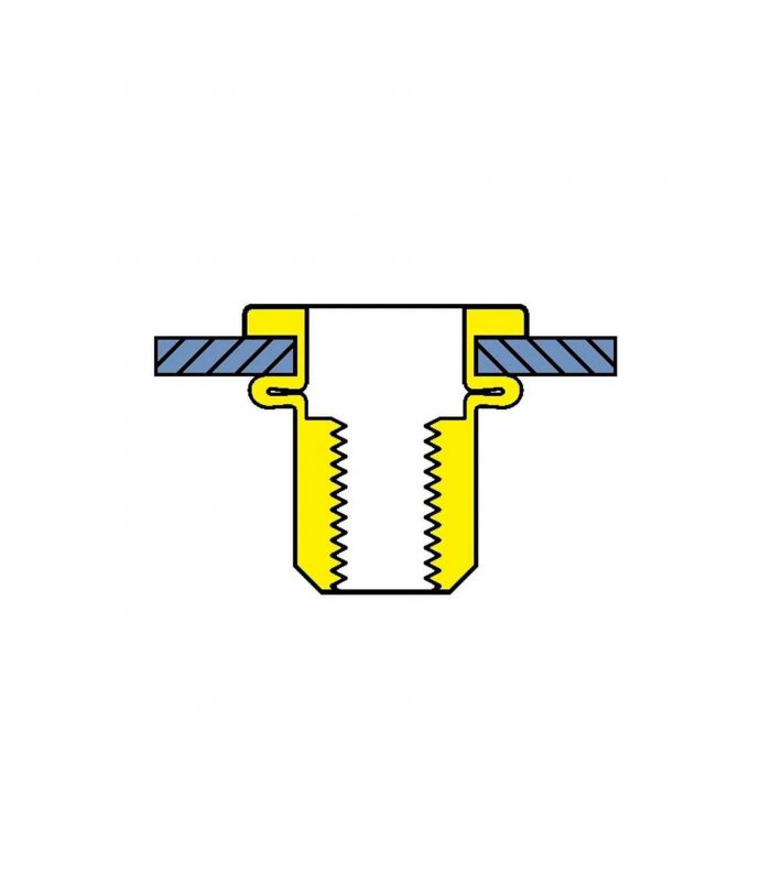 Nitonakrętka otwarta, wykonana jest ze stali. Kołnierz płaski usztywnia połączenie i zwiększa powierzchnię dociskową. Przy tym typie nitonakrętki technika wykonania otworu jest dowolna, nalezy jednak zwrócić uwagę jaka powinna być średnica otwori ściśle trzymać się tego paramertu.