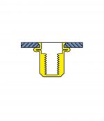 Nitonakrętka zamknięta (szczelna), wykonana jest ze stali. Kołnierz typu mini stożek daje możliwość licowania z materiałem bez konieczności wykonania fazy w otworze. Zamknięta forma nitonakrętki gwarantuje szczelność łączenia ale należy pamiętać o doborze odpowiedniej długości śruby.