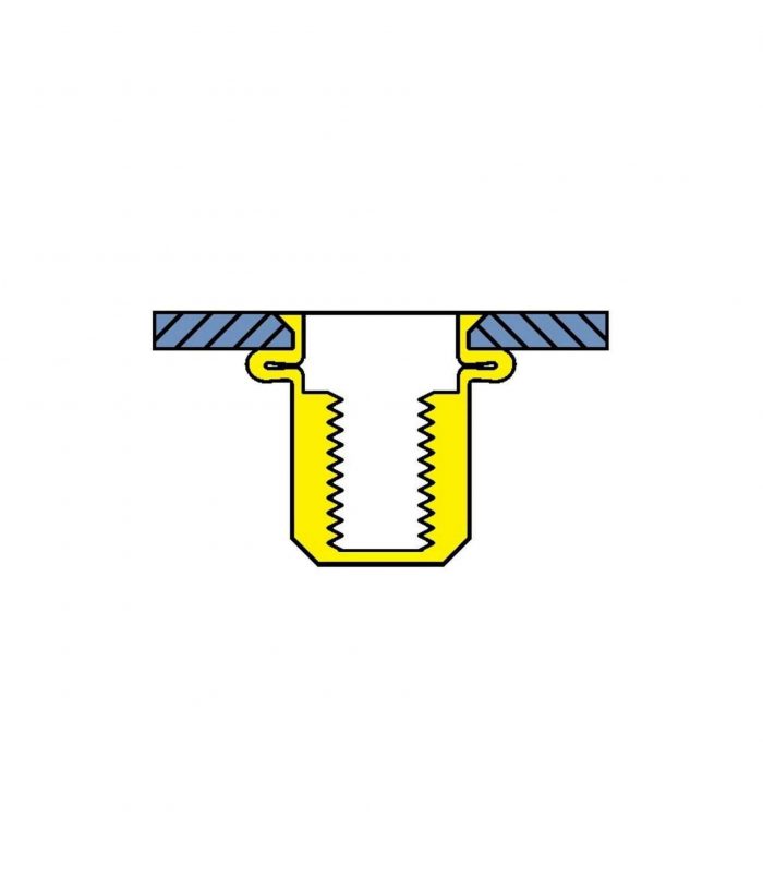 Nitonakrętka zamknięta (szczelna), wykonana jest ze stali. Kołnierz typu mini stożek daje możliwość licowania z materiałem bez konieczności wykonania fazy w otworze. Zamknięta forma nitonakrętki gwarantuje szczelność łączenia ale należy pamiętać o doborze odpowiedniej długości śruby.
