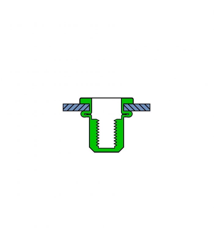 Nitonakrętka sześciokątna zamknięta (szczelna), wykonana jest ze stali nierdzewnej A2. Kołnierz płaski usztywnia połączenie i zwiększa powierzchnię dociskową. Przy tym typie nitonakrętki konieczne jest laserowe wycięcie sześciokątów. Zamknięta forma nitonakrętki gwarantuje szczelność łączenia ale należy pamiętać o doborze odpowiedniej długości śruby.