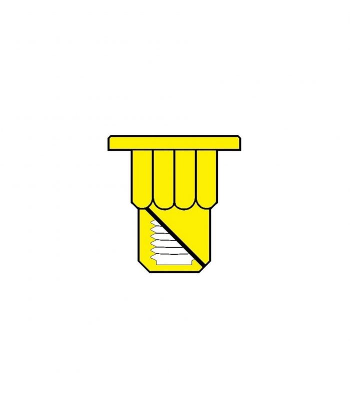 Nitonakrętka sześciokątna zamknięta (szczelna), wykonana jest ze stali . Kołnierz płaski usztywnia połączenie i zwiększa powierzchnię dociskową. Przy tym typie nitonakrętki konieczne jest laserowe wycięcie sześciokątów. Zamknięta forma nitonakrętki gwarantuje szczelność łączenia ale należy pamiętać o doborze odpowiedniej długości śruby.