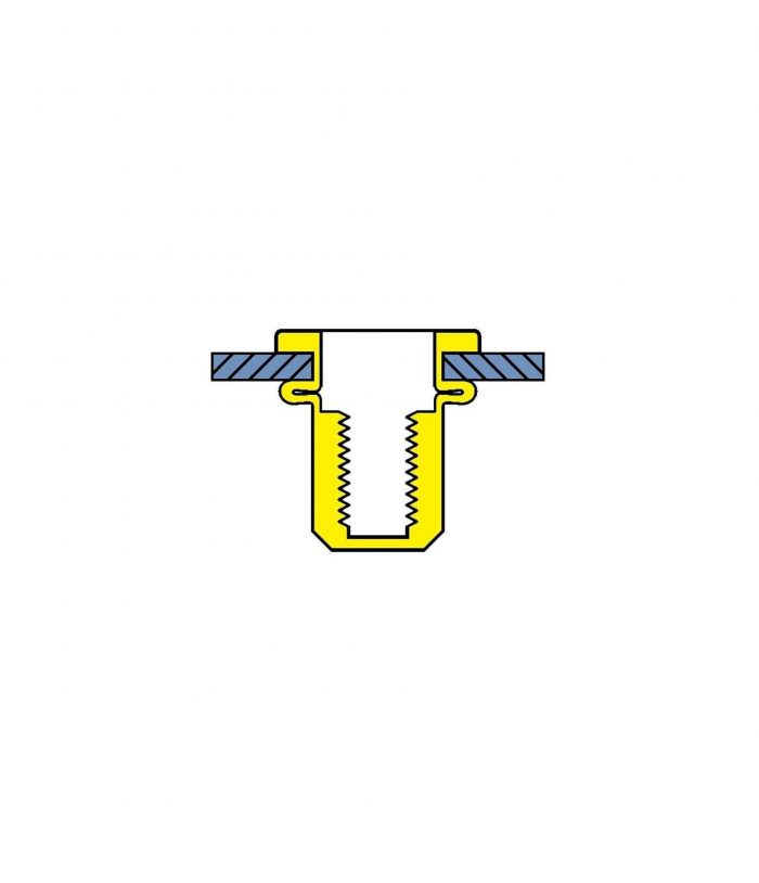 Nitonakrętka sześciokątna zamknięta (szczelna), wykonana jest ze stali . Kołnierz płaski usztywnia połączenie i zwiększa powierzchnię dociskową. Przy tym typie nitonakrętki konieczne jest laserowe wycięcie sześciokątów. Zamknięta forma nitonakrętki gwarantuje szczelność łączenia ale należy pamiętać o doborze odpowiedniej długości śruby.
