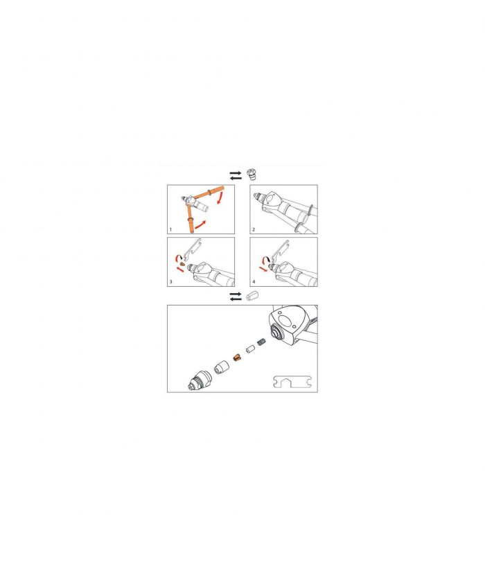 Narzędzie MS2 została wyposażona w system regulacji kąta otwarcia dźwigni, co ułatwia dostosowanie narzędzia do konkretnej pracy. Aby usunąć trzpień z nitonakrętki po zanitowaniu, należy użyć z pokrętła umieszczonego na końcu korpusu narzędzia.