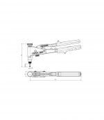 Cechy konstrukcyjne tej nitownicy obejmują łatwą regulację skoku za pomocą nakrętki radełkowej z podziałką skoku, co gwarantuje niezawodne i pełne osadzanie nitonakrętek. Zabezpieczenie trzpienia gwintowanego przy użyciu podkładki sprężystej umożliwia szybką wymianę trzpieni bez potrzeby użycia narzędzi. Dodatkowo, sprężyna otwierająca ułatwia obsługę, a korpus kleszczy wykonany z wysokogatunkowego aluminium odlewanego ciśnieniowo zapewnia trwałość i lekkość narzędzia. Ramiona kleszczy są wykonane z kutej stali chromowo-wanadowej, co dodatkowo podnosi wytrzymałość narzędzia. Wkłady stalowe we wszystkich znacznie obciążonych punktach łożyskowania zapewniają stabilność i długą żywotność nitownicy. Ergonomiczne uchwyty rękojeści z kolei umożliwiają wygodne korzystanie z narzędzia, nawet podczas osadzania większych nitonakrętek.