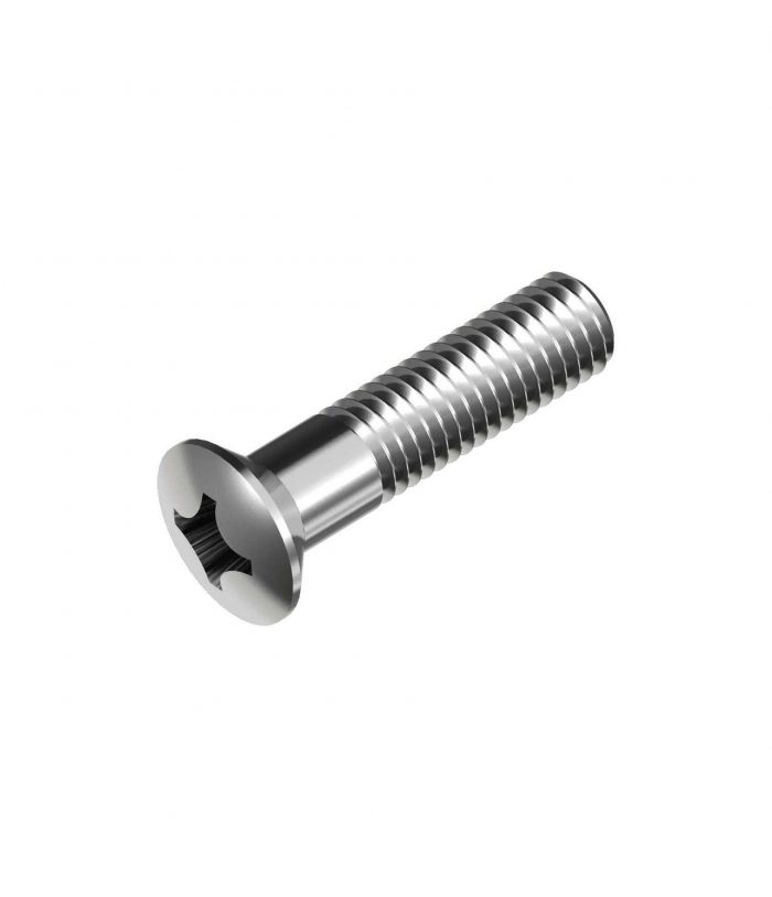 Wkręt do metalu z gwintem metrycznym, łbem soczewkowym i gniazdem na krzyżak. Wykonany zgodnie z normą DIN 966 ze stali nierdzewnej A2