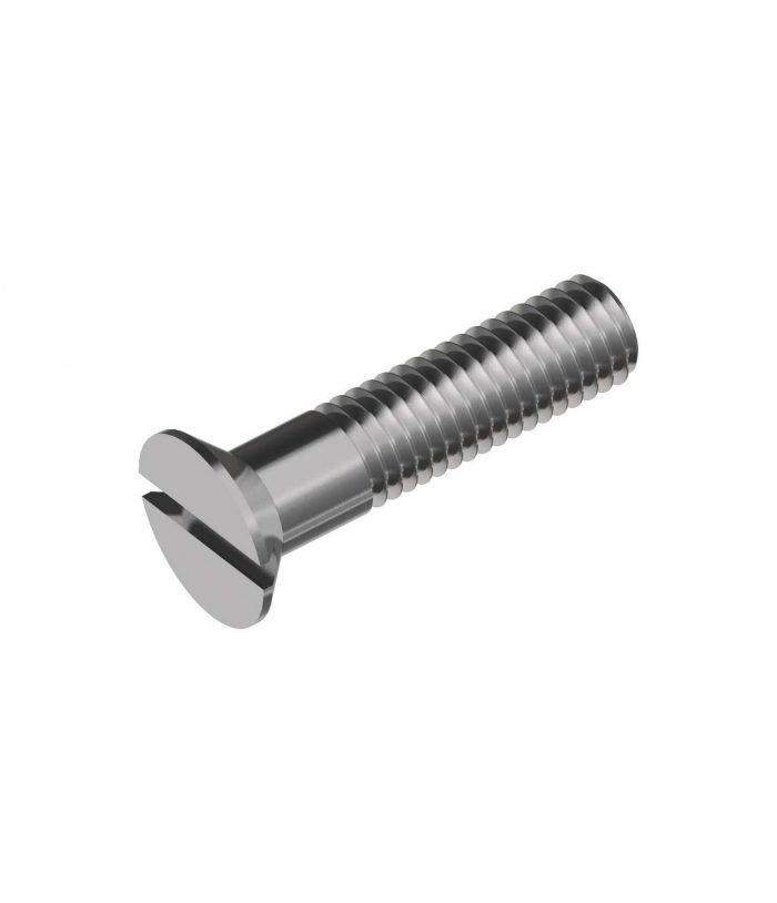 Wkręt do metalu z gwintem metrycznym, łbem stożkowym i gniazdem z nacięciem prostym. Wykonany zgodnie z normą DIN 963 ze stali nierdzewnej A2